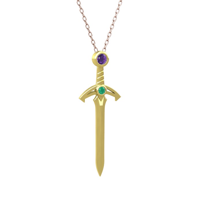 Ametist ve kök zümrüt 14 ayar altın kolye (40 cm rose altın rolo zincir)