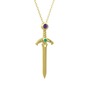 Ametist ve kök zümrüt 8 ayar altın kolye (40 cm gümüş rolo zincir)