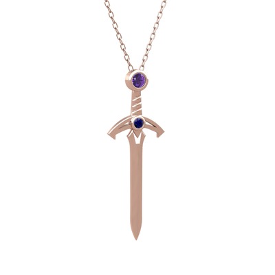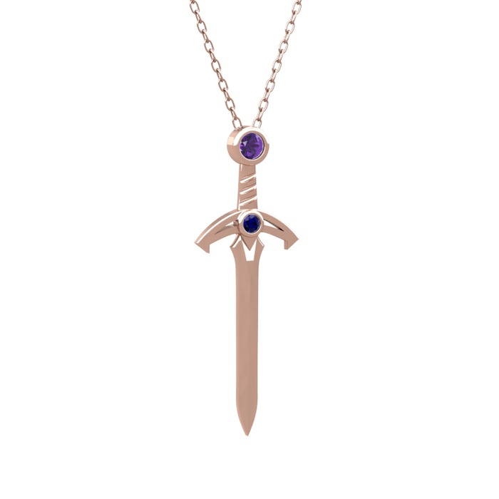 Ametist ve lab safir 8 ayar rose altın kolye (40 cm rose altın rolo zincir)