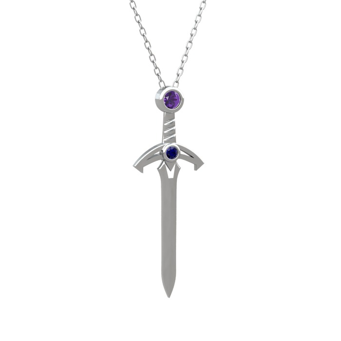 Ametist ve lab safir 925 ayar gümüş kolye (40 cm beyaz altın rolo zincir)