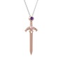 Ametist ve pembe kuvars 8 ayar rose altın kolye (40 cm beyaz altın rolo zincir)