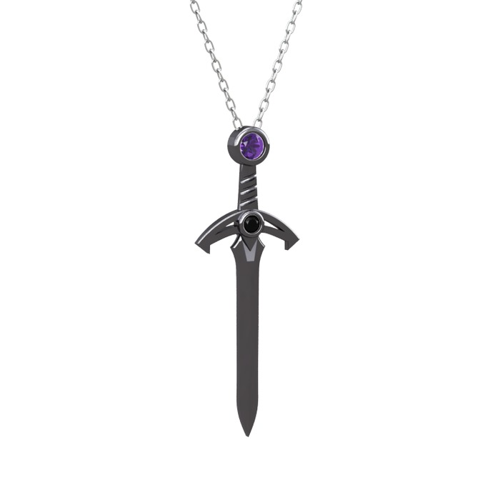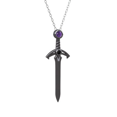 Ametist ve siyah zirkon 925 ayar siyah rodyum kaplama gümüş kolye (40 cm beyaz altın rolo zincir)