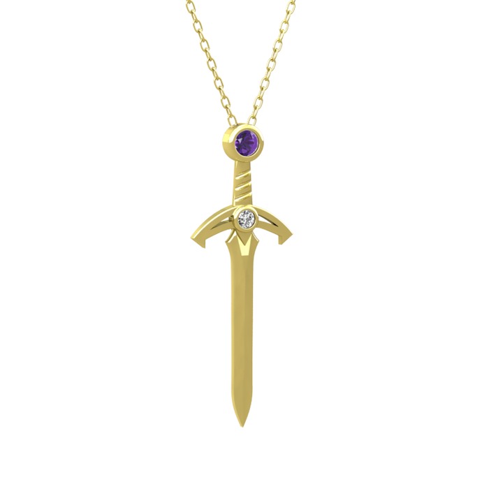 Ametist ve swarovski 14 ayar altın kolye (40 cm altın rolo zincir)