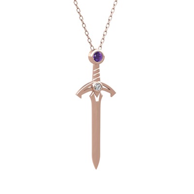 Ametist ve swarovski 8 ayar rose altın kolye (40 cm gümüş rolo zincir)