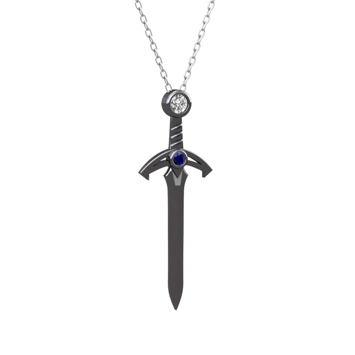 Beyaz zirkon ve lab safir 925 ayar siyah rodyum kaplama gümüş kolye (40 cm gümüş rolo zincir)