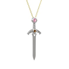 Beyaz zirkon ve pembe kuvars 14 ayar altın kolye (40 cm altın rolo zincir)