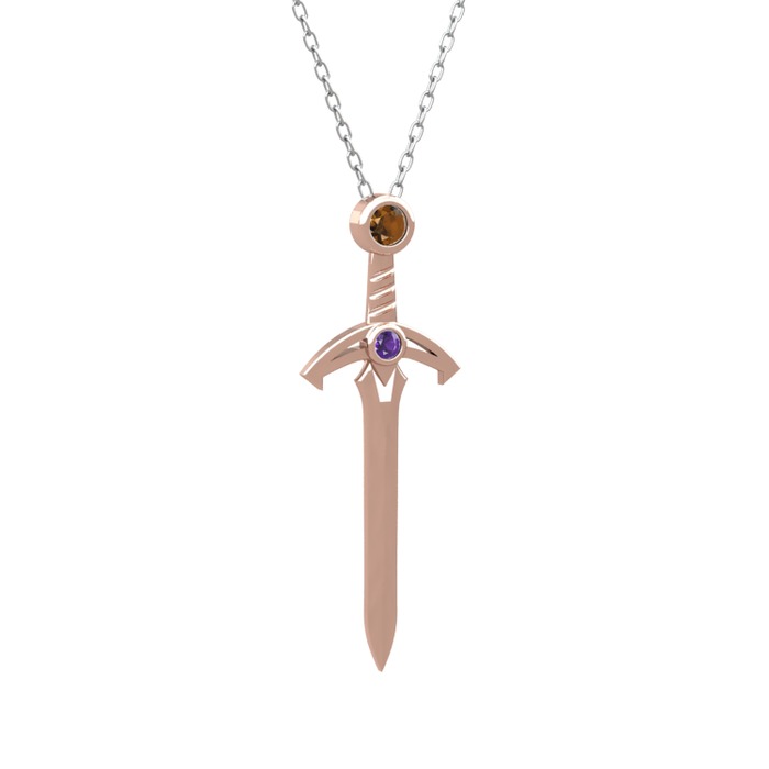 Dumanlı kuvars ve ametist 14 ayar rose altın kolye (40 cm beyaz altın rolo zincir)