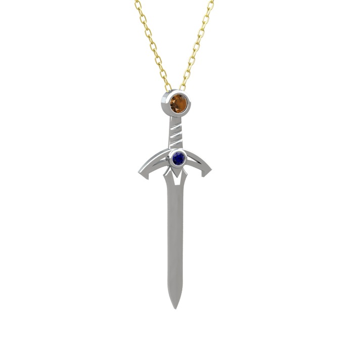 Dumanlı kuvars ve lab safir 8 ayar beyaz altın kolye (40 cm altın rolo zincir)