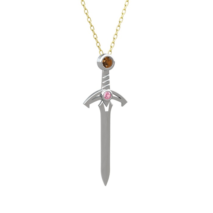 Dumanlı kuvars ve pembe kuvars 8 ayar beyaz altın kolye (40 cm altın rolo zincir)