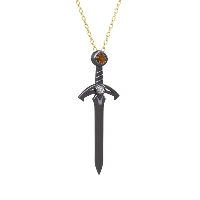 Dumanlı kuvars ve swarovski 925 ayar siyah rodyum kaplama gümüş kolye (40 cm altın rolo zincir)