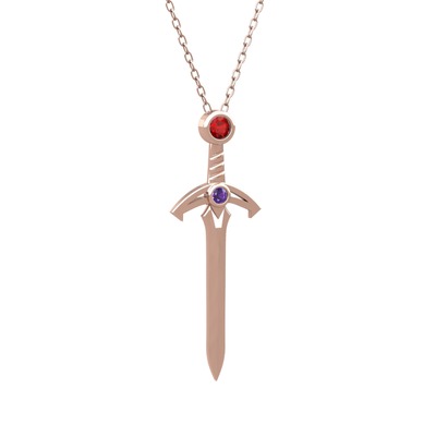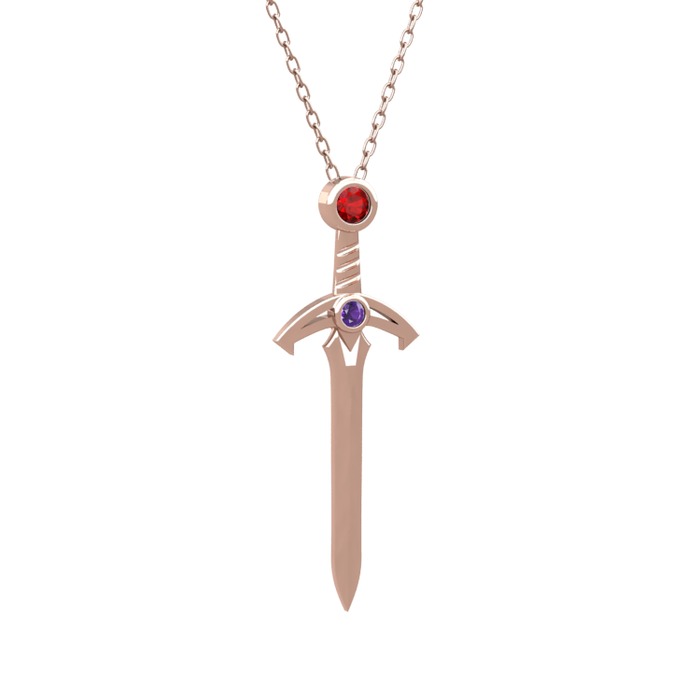 Garnet ve ametist 18 ayar rose altın kolye (40 cm rose altın rolo zincir)