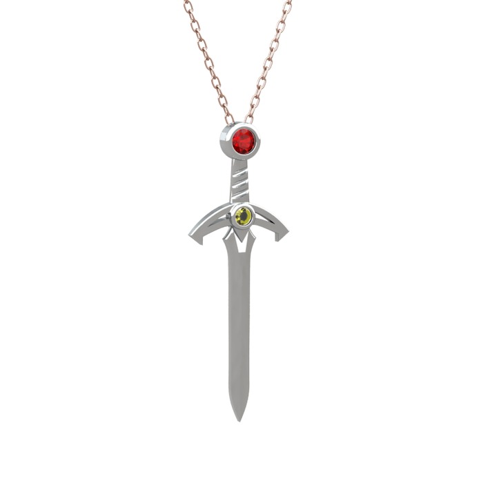 Garnet ve peridot 8 ayar beyaz altın kolye (40 cm gümüş rolo zincir)