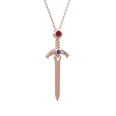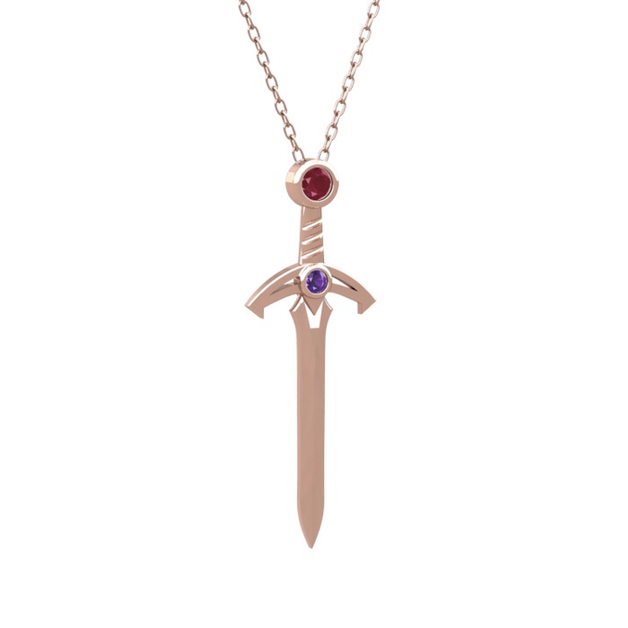 Kök yakut ve ametist 14 ayar rose altın kolye (40 cm rose altın rolo zincir)