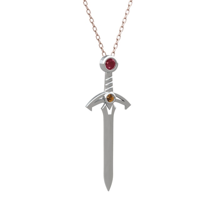 Kök yakut ve dumanlı kuvars 8 ayar beyaz altın kolye (40 cm rose altın rolo zincir)