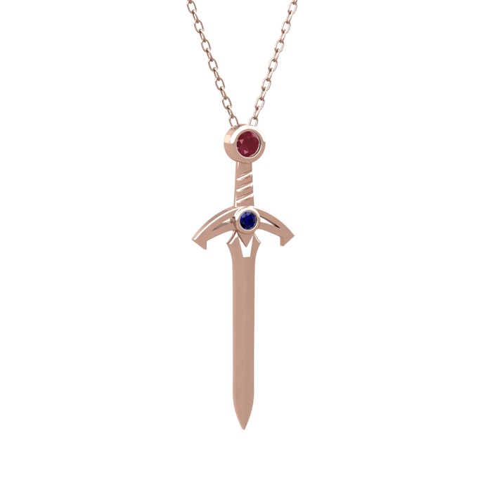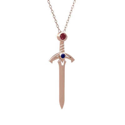 Kök yakut ve lab safir 8 ayar rose altın kolye (40 cm rose altın rolo zincir)