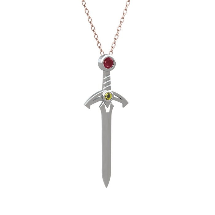 Kök yakut ve peridot 8 ayar beyaz altın kolye (40 cm rose altın rolo zincir)