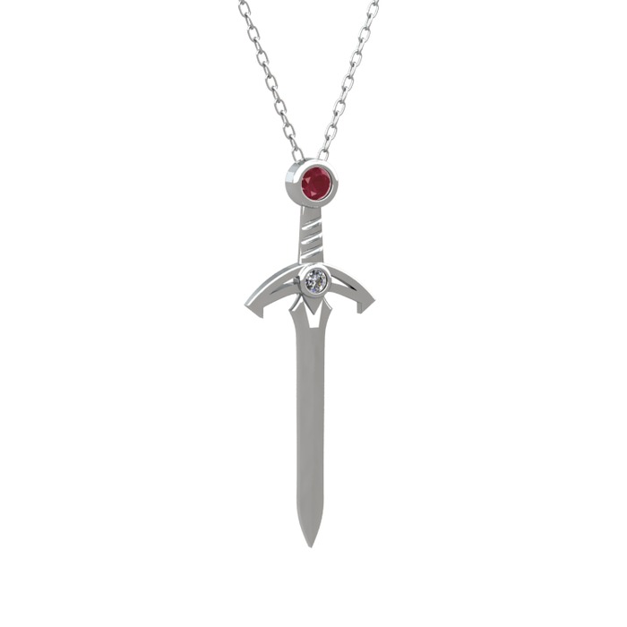 Kök yakut ve pırlanta 925 ayar gümüş kolye (0.036 karat, 40 cm gümüş rolo zincir)