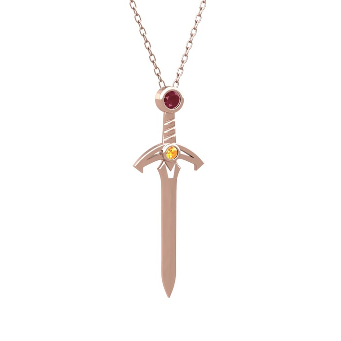 Kök yakut ve sitrin 925 ayar rose altın kaplama gümüş kolye (40 cm gümüş rolo zincir)