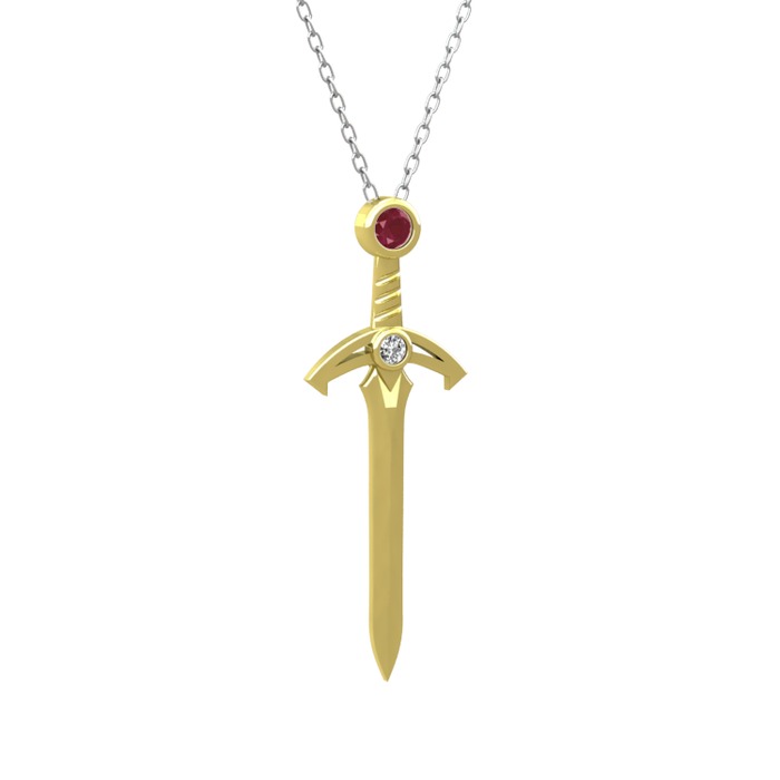 Kök yakut ve swarovski 18 ayar altın kolye (40 cm gümüş rolo zincir)