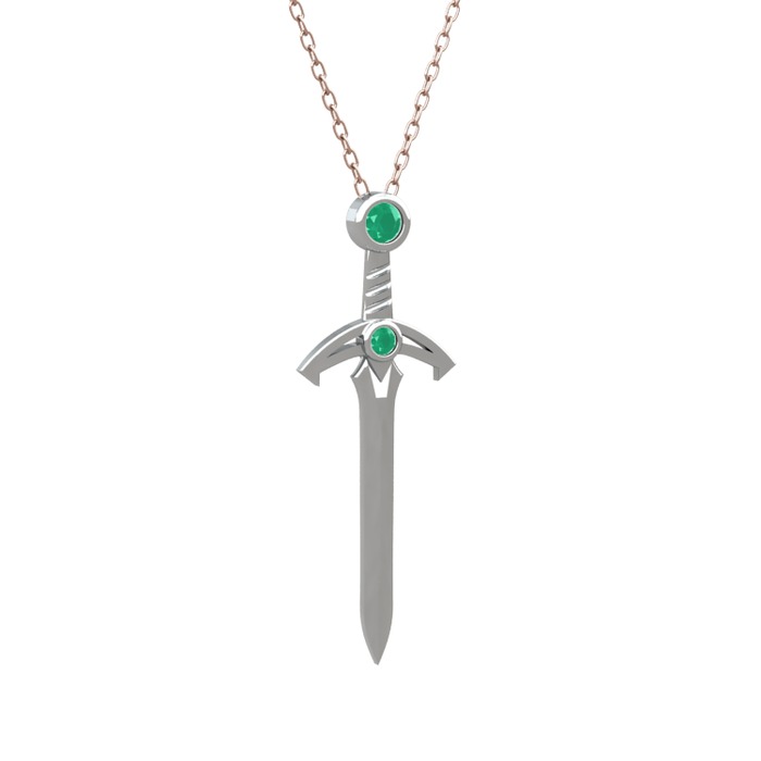 Kök zümrüt 14 ayar beyaz altın kolye (40 cm rose altın rolo zincir)