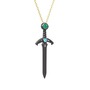 Kök zümrüt ve akuamarin 925 ayar siyah rodyum kaplama gümüş kolye (40 cm altın rolo zincir)