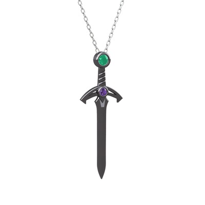 Kök zümrüt ve ametist 925 ayar siyah rodyum kaplama gümüş kolye (40 cm gümüş rolo zincir)