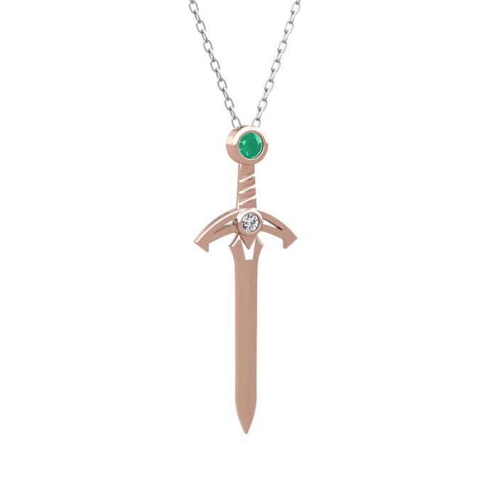 Kök zümrüt ve beyaz zirkon 8 ayar rose altın kolye (40 cm beyaz altın rolo zincir)