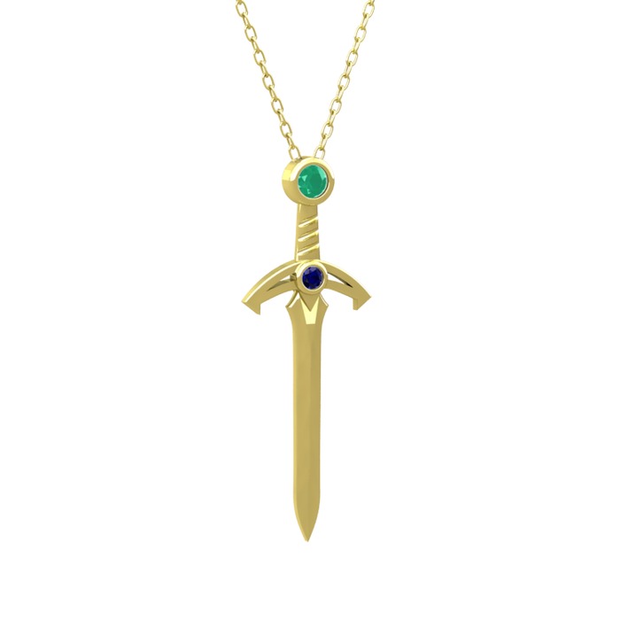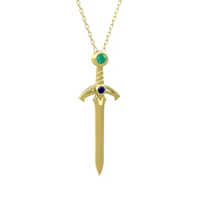 Kök zümrüt ve lab safir 8 ayar altın kolye (40 cm altın rolo zincir)
