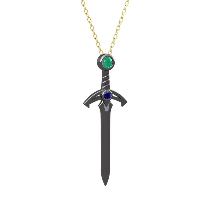 Kök zümrüt ve lab safir 925 ayar siyah rodyum kaplama gümüş kolye (40 cm gümüş rolo zincir)