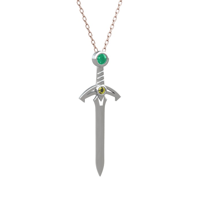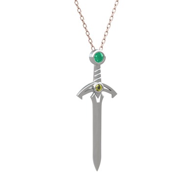 Kök zümrüt ve peridot 925 ayar gümüş kolye (40 cm rose altın rolo zincir)
