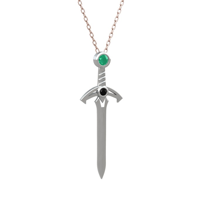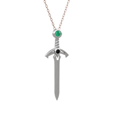 Kök zümrüt ve siyah zirkon 925 ayar gümüş kolye (40 cm gümüş rolo zincir)