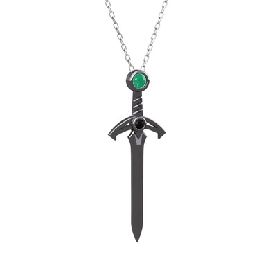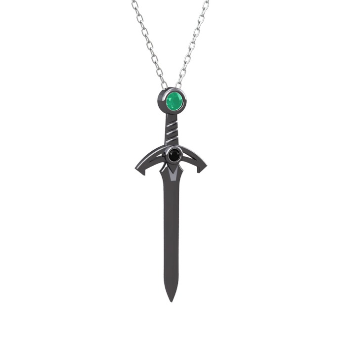 Kök zümrüt ve siyah zirkon 925 ayar siyah rodyum kaplama gümüş kolye (40 cm gümüş rolo zincir)