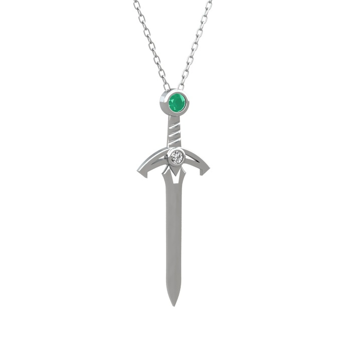 Kök zümrüt ve swarovski 8 ayar beyaz altın kolye (40 cm beyaz altın rolo zincir)