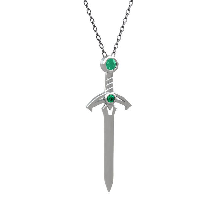 Kök zümrüt ve yeşil kuvars 8 ayar beyaz altın kolye (40 cm gümüş rolo zincir)