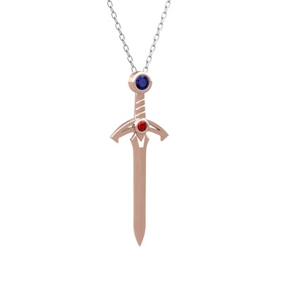 Lab safir ve garnet 925 ayar rose altın kaplama gümüş kolye (40 cm beyaz altın rolo zincir)