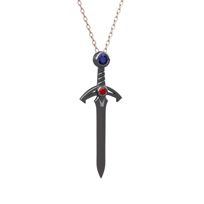 Lab safir ve garnet 925 ayar siyah rodyum kaplama gümüş kolye (40 cm rose altın rolo zincir)