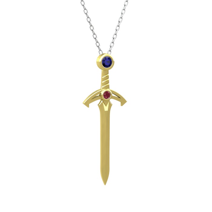 Lab safir ve kök yakut 14 ayar altın kolye (40 cm gümüş rolo zincir)