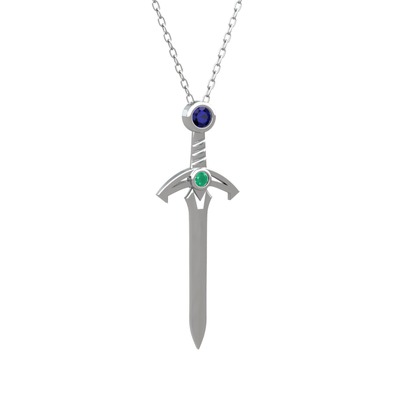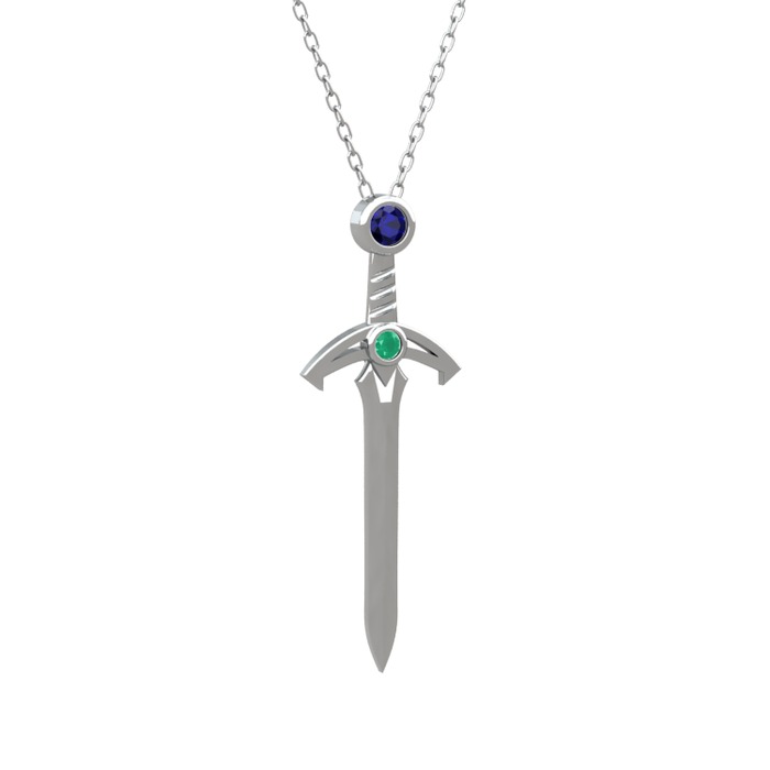 Lab safir ve kök zümrüt 18 ayar beyaz altın kolye (40 cm beyaz altın rolo zincir)