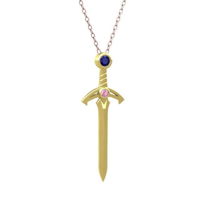Lab safir ve pembe kuvars 18 ayar altın kolye (40 cm rose altın rolo zincir)