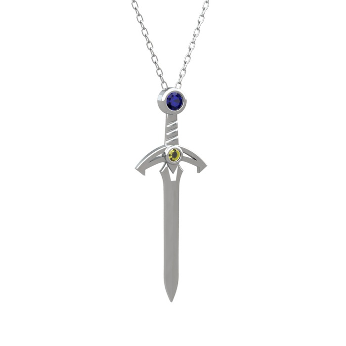 Lab safir ve peridot 18 ayar beyaz altın kolye (40 cm beyaz altın rolo zincir)