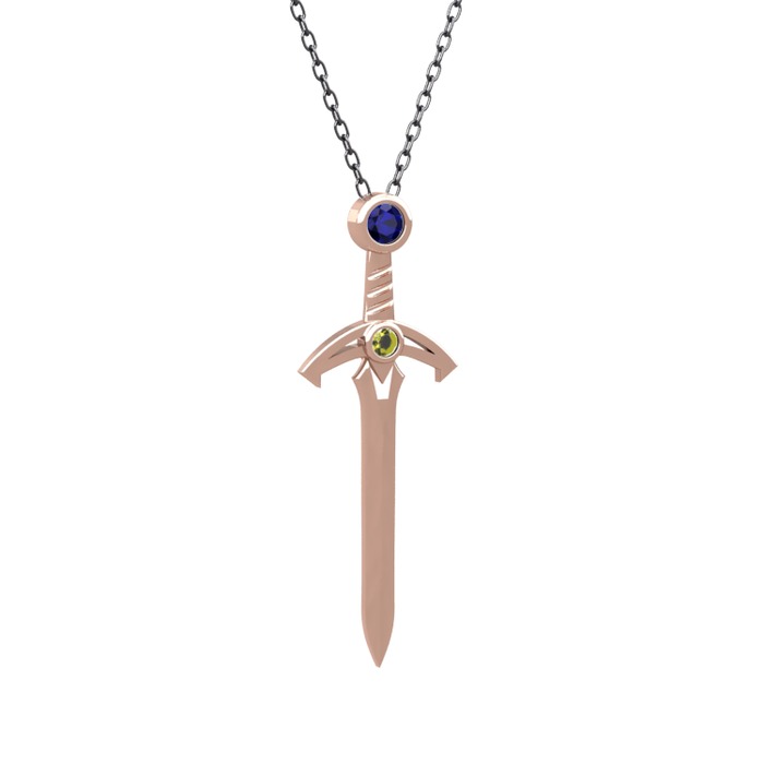 Lab safir ve peridot 18 ayar rose altın kolye (40 cm gümüş rolo zincir)