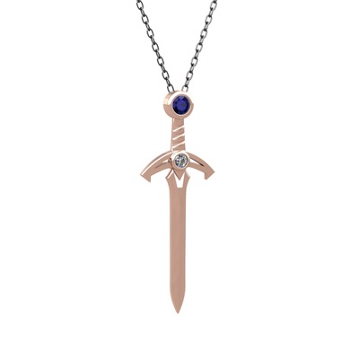 Lab safir ve pırlanta 18 ayar rose altın kolye (0.036 karat, 40 cm gümüş rolo zincir)