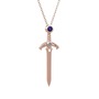 Lab safir ve pırlanta 925 ayar rose altın kaplama gümüş kolye (0.036 karat, 40 cm rose altın rolo zincir)