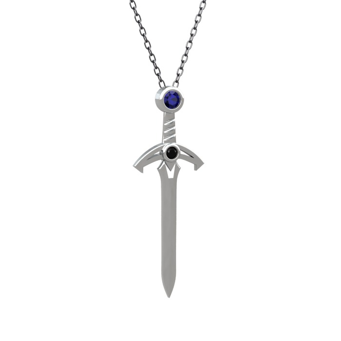 Lab safir ve siyah zirkon 14 ayar beyaz altın kolye (40 cm gümüş rolo zincir)