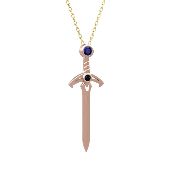 Lab safir ve siyah zirkon 925 ayar rose altın kaplama gümüş kolye (40 cm gümüş rolo zincir)