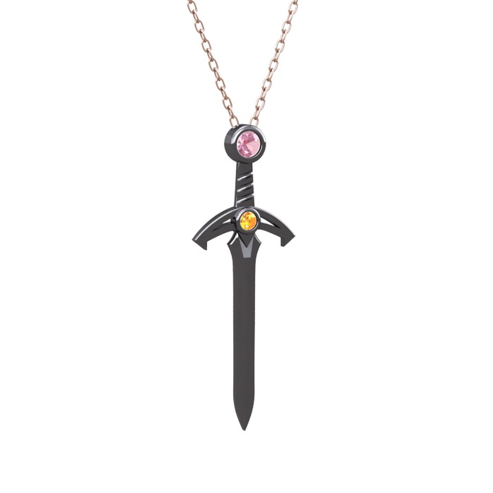 Pembe kuvars ve sitrin 925 ayar siyah rodyum kaplama gümüş kolye (40 cm rose altın rolo zincir)