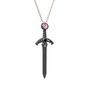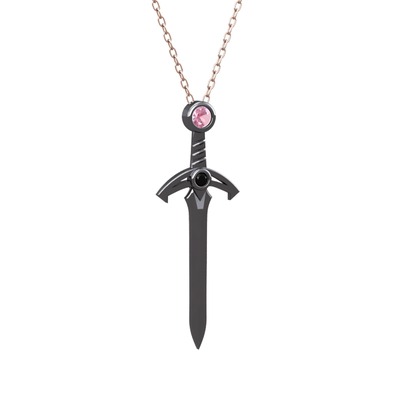 Pembe kuvars ve siyah zirkon 925 ayar siyah rodyum kaplama gümüş kolye (40 cm rose altın rolo zincir)