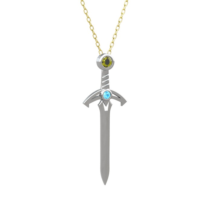 Peridot ve akuamarin 8 ayar beyaz altın kolye (40 cm gümüş rolo zincir)