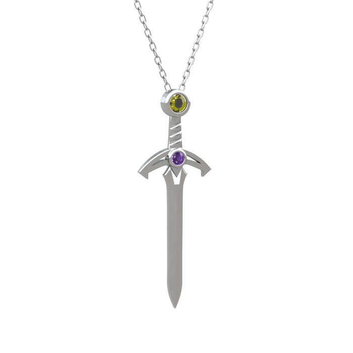 Peridot ve ametist 8 ayar beyaz altın kolye (40 cm beyaz altın rolo zincir)