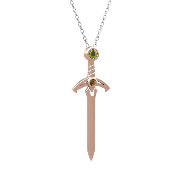 Peridot ve dumanlı kuvars 14 ayar rose altın kolye (40 cm beyaz altın rolo zincir)